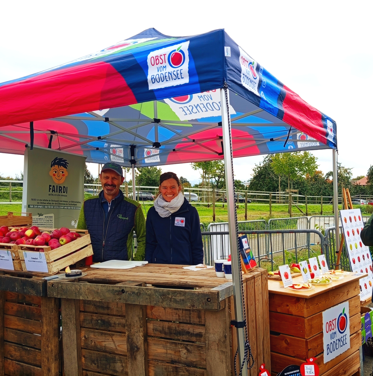 Der Apfelhock in Immenstaad wird im Rahmen des 100-jährigen Jubiläums der Tourismusgemeinschaft Immenstadt veranstaltet. Hier drehte sich am 05.10. alles um den Apfel: An unserem Gemeinschaftsstand mit FAIRDI konnten sich Besucher aus nah und fern durch ein köstliches Sortiment an verschiedenen Apfelsorten durchprobieren und dazu informieren.